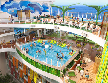 Pasea por un auténtico jardín natural en el corazón del barco, con restaurantes, tiendas y más.
