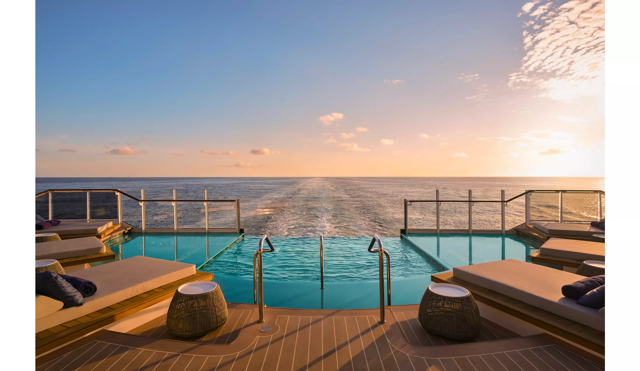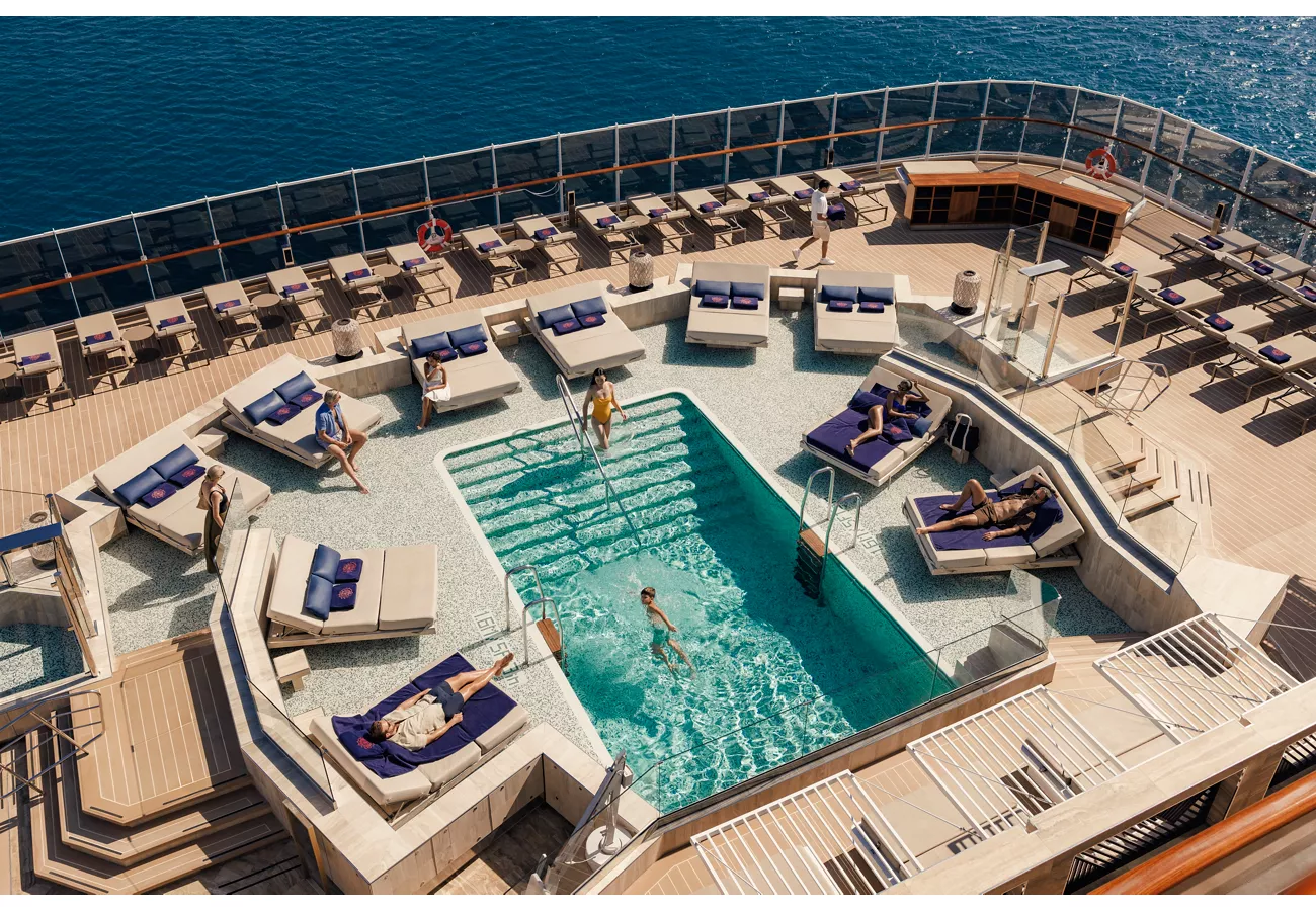 Una piscina íntima en lo más alto con vistas a popa para relajarte.