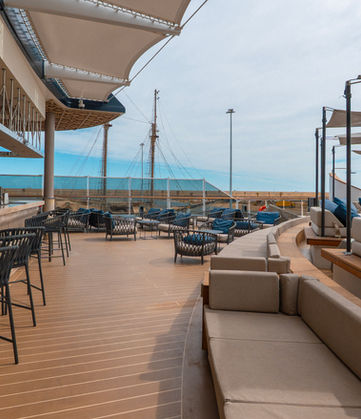 Un lugar abierto todo el día que te invita a actividades a la vez que disfrutas del mar.